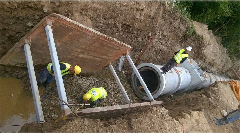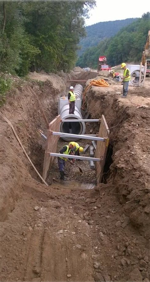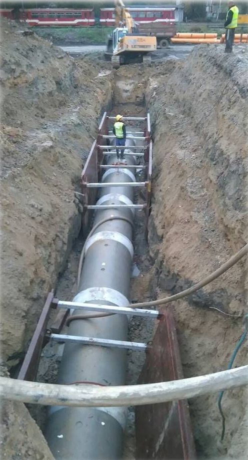 Pri realizácii sa okrem vybudovania výkopu použila aj bezvýkopová technika (pretláčanie) popod železničnú trať.