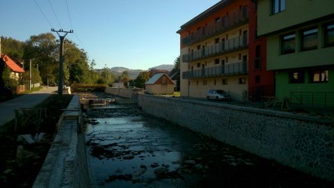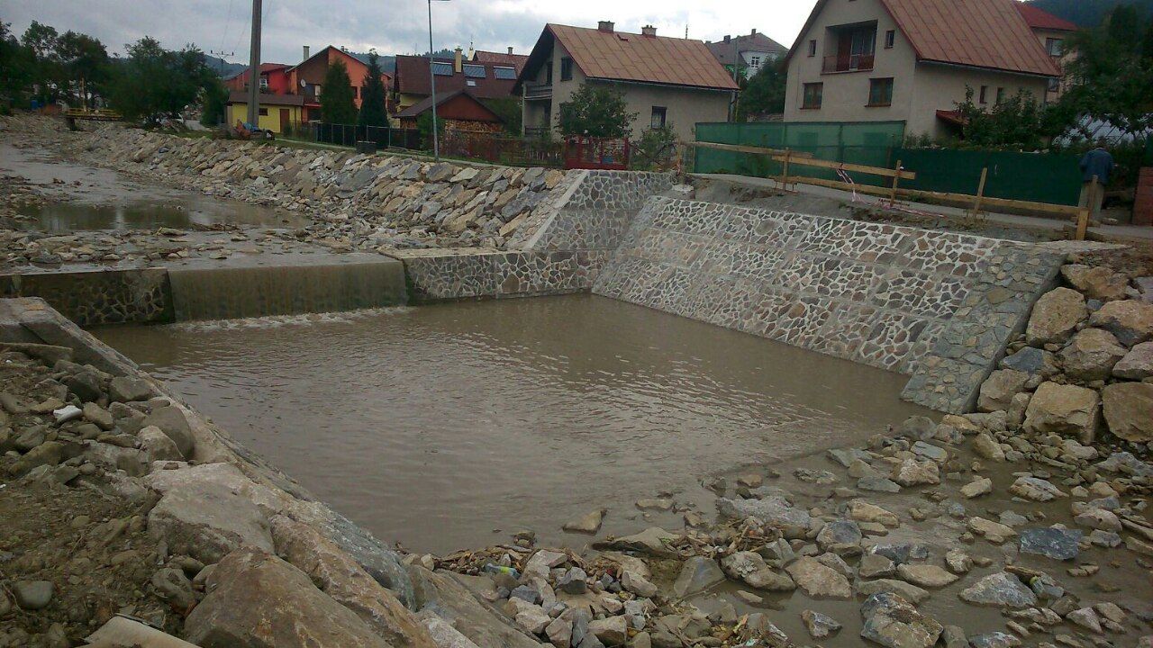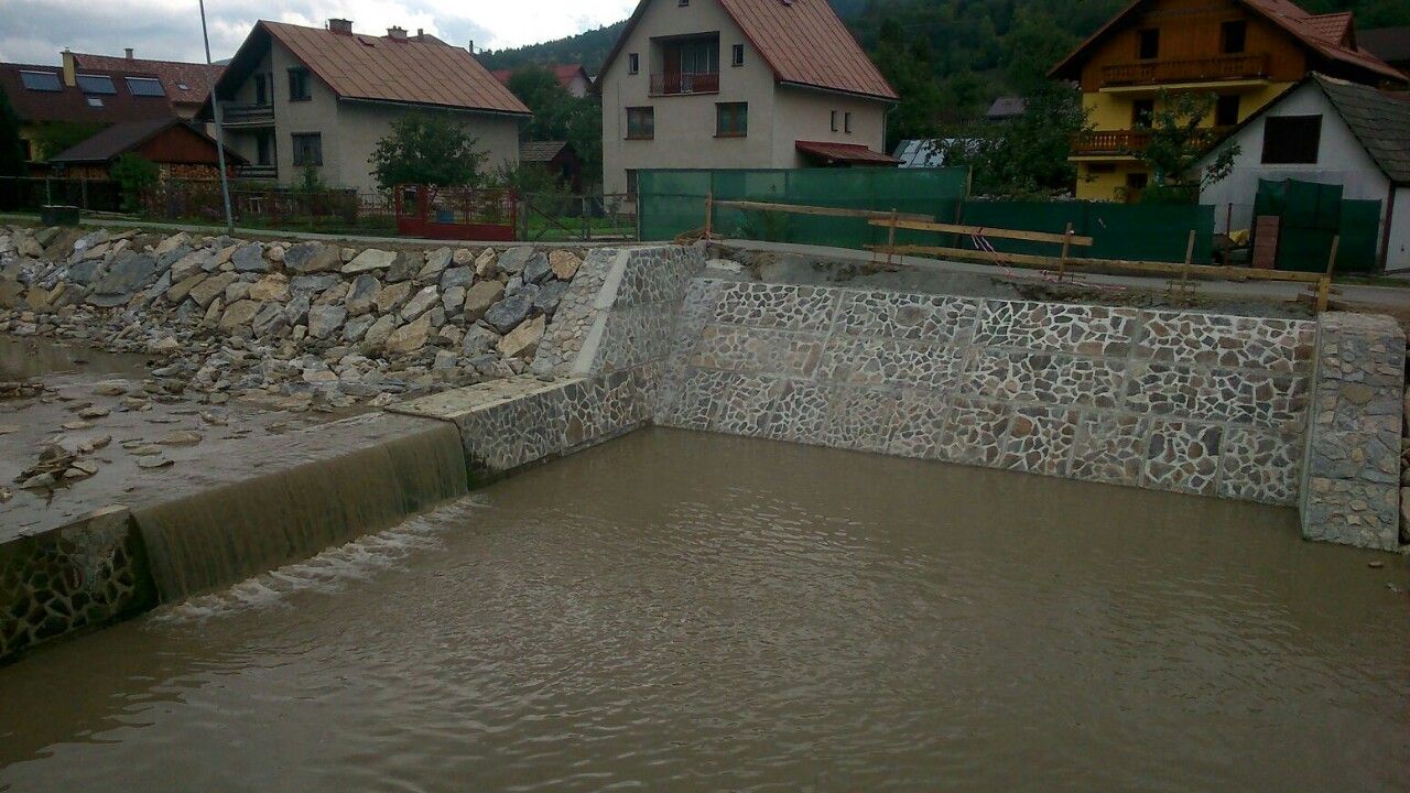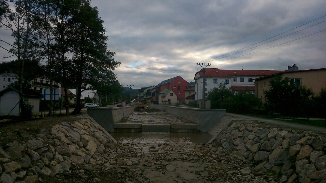 Úprava vodného toku Oščadnica, vytvorenie brehového opevnenia, stabilizácia dna, preložka telekomunikačných káblov.