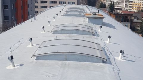 Strecha: Výmena a rekonštrukcia poškodených častí konštrukcie strešného krovu - výmena, ochranné nátery, odvetranie podkrovia, nové strešné vrstvy, zabudovaný nový výlez na strechu s elektronickým ovládaním.